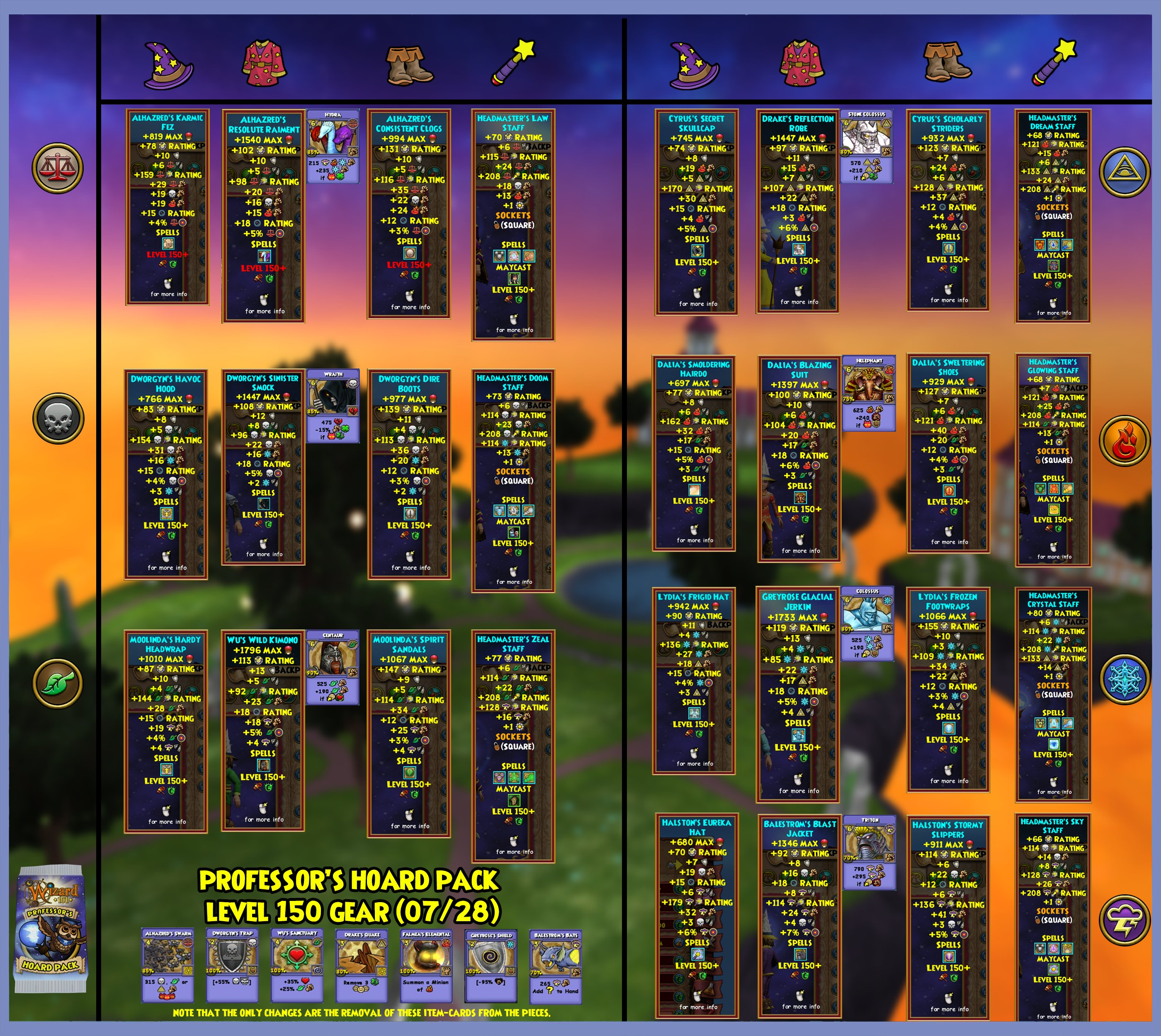 **Wednesday, July 20th 2022 /** [<mark style="color:green;">**V\_r720843.WizardDev**</mark>](https://w101archives.gitbook.io/w101archives/content/update-history/patch-notes#t-v_r720843.wizarddev)<mark style="color:green;">**:**</mark> The updated Professor's Hoard gear is [added to the files](about:blank) with the initial test realm patch!